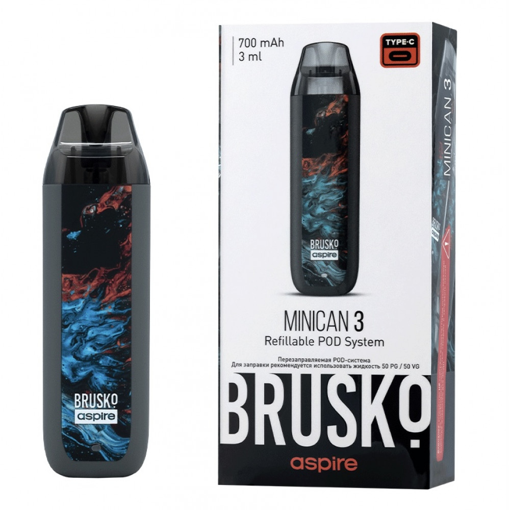 Перезаправляемая Под-Система Бруско Миникан 3 (Brusko Minican 3) 700 mah, Серый Флюид - купить в Советской Гавани